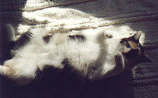 Bella läßt sich die Nachmittagssonne auf den Bauch knallen. |